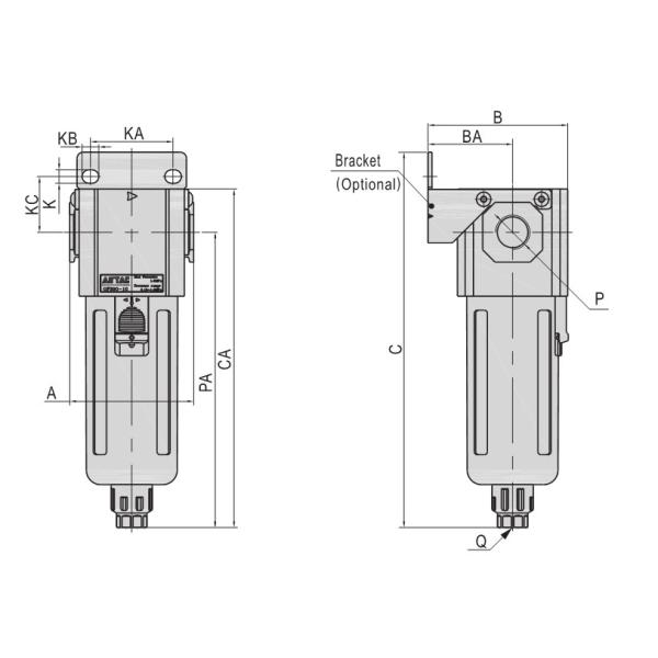 Pressure range Semi-auto and automatic drain:0.15~0.9Mpa(20~130psi),Manual drain:0.05~0.9Mpa(7~130psi)